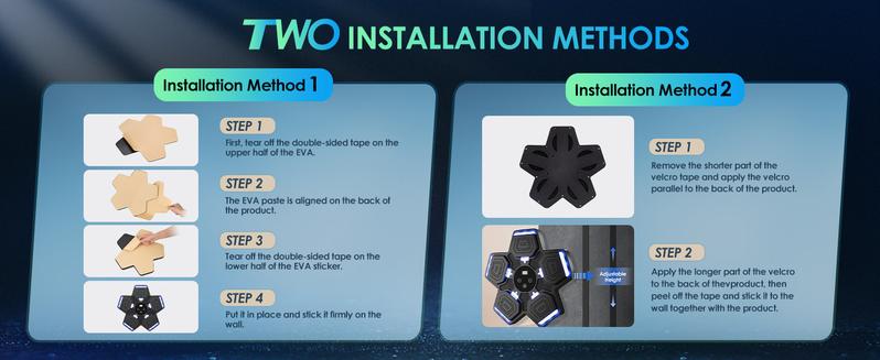 The music boxing machine is easy to install. There are two installation methods, adhesive and velcro, velcro can be freely adjusted, the installation is more time-saving, space-saving!
